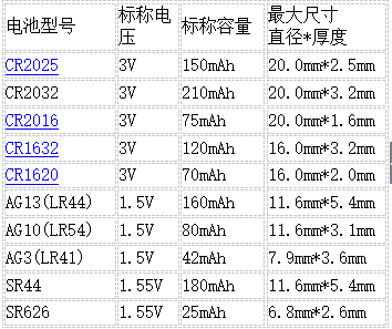 从电池的背面可以看到相应的标记,代表了不同各类的纽扣电池。