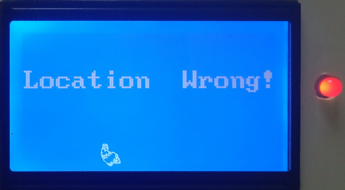 产品刚上电时显示搜寻GPS中,等待GPS信号传回,当接收到正确地理位置信息时开始检索外置EEPROM内的存储密码,然后进入输入密码界面。否则提示位置错误,无法进入下一步开锁。