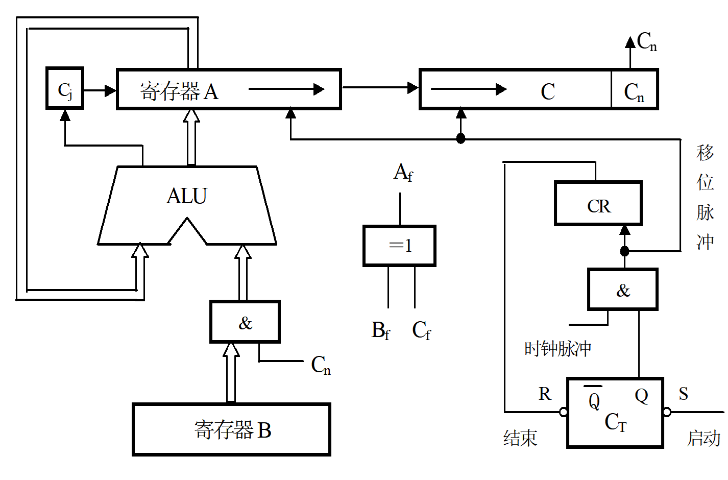 CR:计数器。用于记录乘法次数运算初始时,CR=0,每进行一次运算CR+1,当计数到CR=n时,将C<sub>T</sub>清0,结束运算。
