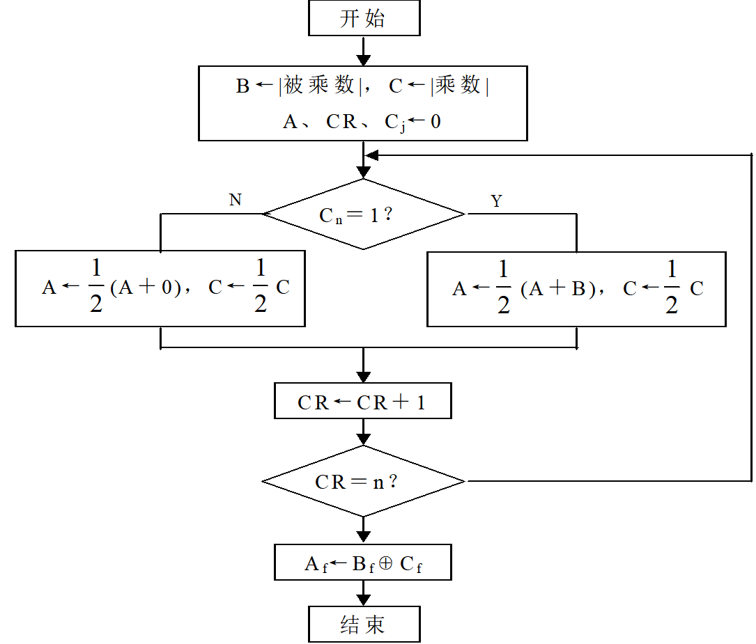 根据上式,可将乘法转换为一系列加法与移位操作。将递推公式推广到n位,得: