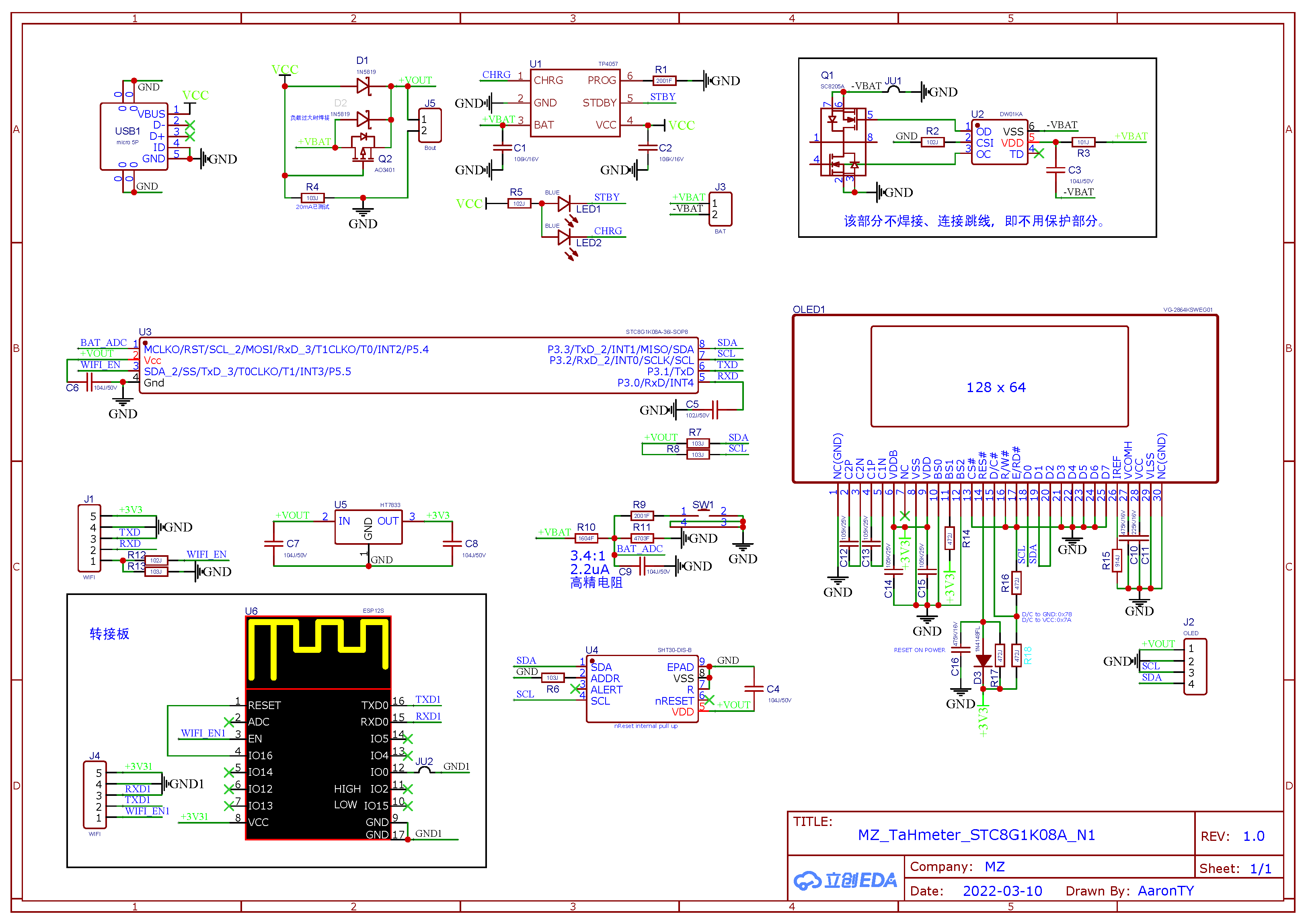之后要测一下STC8G的功耗和ESP8266核的功耗对比一下,之前一直想着只用ESP8266来做,不过考虑到后期超低功耗的拓展,有可能把WIFI换为蓝牙,所以就用了51,如果两者动态平均功耗差不多的话可以再考虑只用ESP8266,空间会小很多。